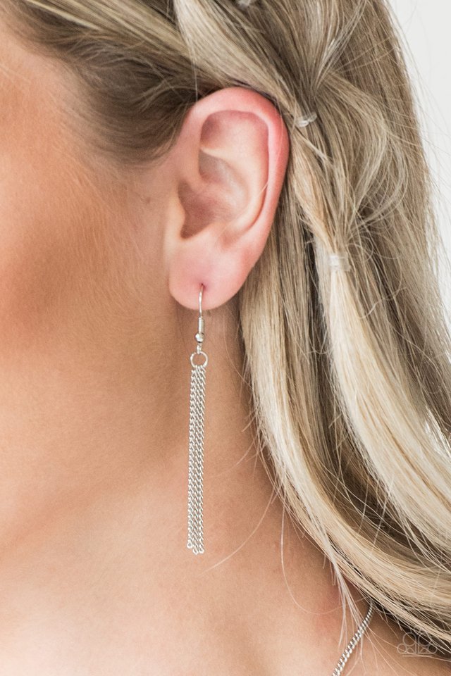 Brushed in a vivacious purple finish, a bubbly silver teardrop swings from the bottom of an elongated silver chain for a tribal inspired look. Features an adjustable clasp closure. Sold as one individual necklace. Includes one pair of matching earrings.